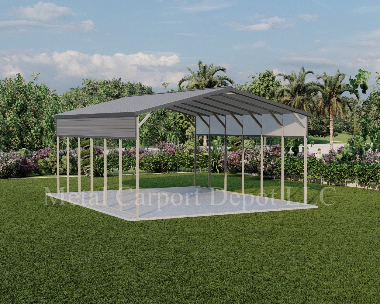 We can make almost any custom configuration according to your needs & specifications, including specific widths, lengths, & more. You can select different wall heights, close walls, add windows, walk-in doors, lean-tos, & more while ordering. Choose from multiple colors for the roof, walls, & trim. Conveniently place your order below, or we can take it over the phone!