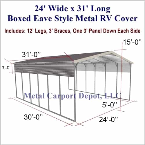 24' x 31' Boxed Eave Style Metal RV Cover