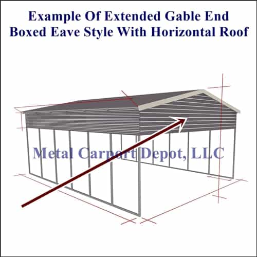 On the Boxed Eave Style Metal RV Cover, (A-Frame Type), the RV Cover comes with the Standard Horizontal Roof. The Roof Panels run parallel to the side of the Structure. Water will drain to the front or the back of the Structure. On this style you have the option of having the roof panels Boxed Eave Style with the Vertical Roof for an additional charge. We recommend the Vertical Roof Style for the small difference in price versus the Horizontal Roof Style. We highly recommend any Metal Structure longer than 31 feet be upgraded to the Vertical Roof Style to avoid any potential leaks at the seams. You may also want to order this style to more closed resemble other buildings on your property.
